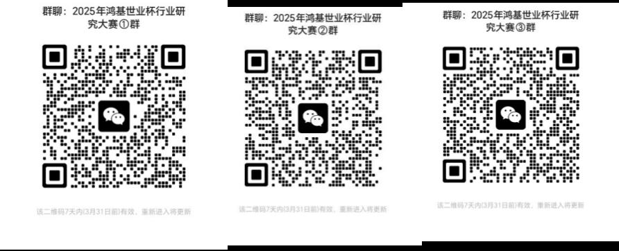 大赛微信群:以下二维码为“鸿基世业杯”沙河高教园区首届暨437ccm必赢国际版第十三届行业研究大赛初赛参赛群,请有意向参赛的同学扫码入群,入群请备注学校-专业-年级-姓名。